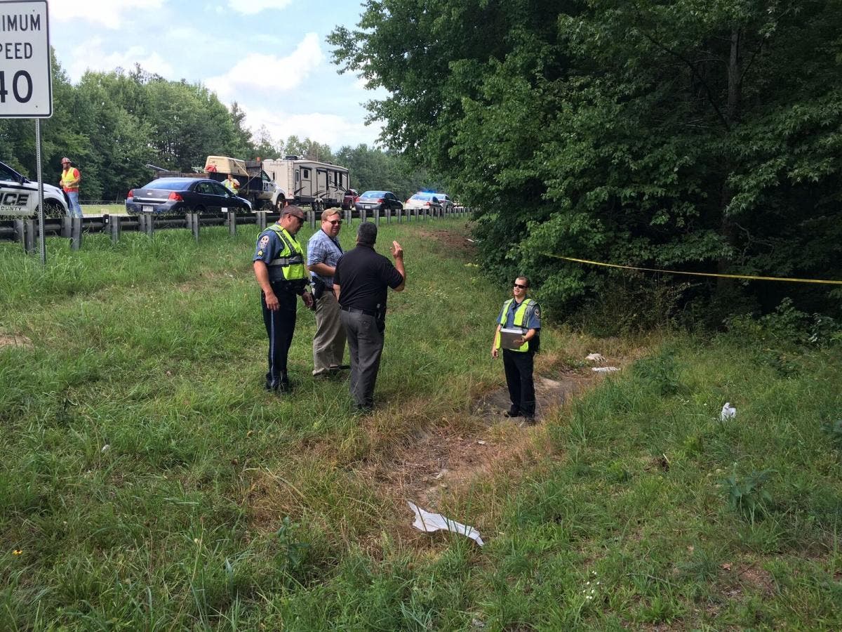 The call came in to police at about 11 a.m. from a Department of Transportation construction worker who was working on a section of the interstate just north of Buford Drive, where Interstate 85 and Interstate 985 split.