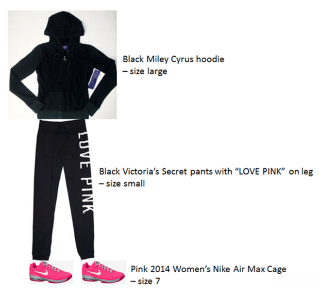 - Black, Victoria's Secret pants with the words "LOVE PINK" on one leg, size small