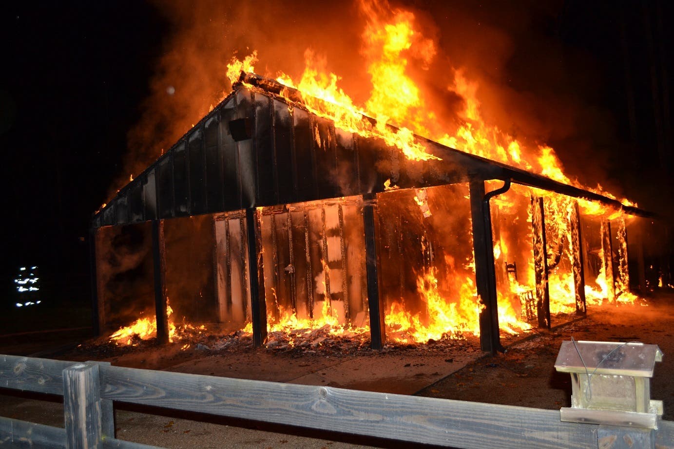 When firefighters arrived on the scene, they were greeted with heavy flames and smoke coming from the 1,000-square-foot barn, which was built in 2006.