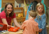 Photo 3: .R.M. Moore ES Pre-K teacher Kelly Street works with students Finn Anderson and Emma Kate Townsend during centers time.