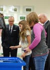 Photo 5: Lt. Gov. Casey Cagle, left, listens to Canton ES STEM Academy ESOL teacher Susan La Serna (standing, right) introduce presentations on American history by her students.