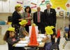 Photo 2: Canton ES STEM Academy Principal Beth Long, Sen. Brandon Beach and Lt. Gov. Casey Cagle stop in Nicole Eichenberger (left) and Patricia Corneillie’s EIP classroom where “hard work is underway” with a clever construction theme.