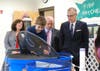 Photo 3: Canton ES STEM Academy fourth-graders Alexis Reed (foreground) and Charity Austin show Lt. Gov. Casey Cagle and Senator Brandon Beach the fish that swim beneath the plant trays and explain their role in hydroponics.