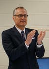 Photo 8: Lt. Gov. Casey Cagle applauds a student’s presentation on President Abraham Lincoln in Susan La Serna’s ESOL class at Canton ES STEM Academy.