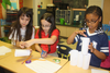 Photo Two: 4th Graders Madison Mejice, Rhiannon Crisante and Aeisha Lofton create skyscraper mockups.