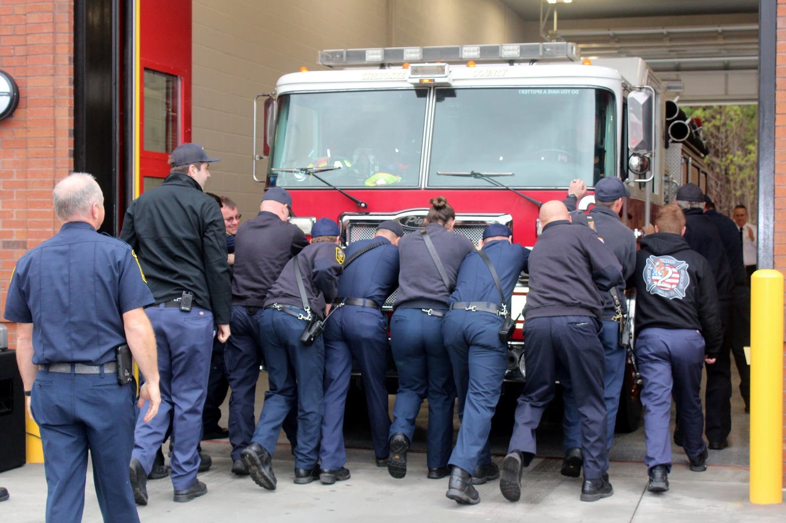 Following the event, a hose uncoupling ceremony was held with various fire, county and Ball Ground leaders. After the uncoupling, the agency held the traditional "push-in" ceremony, which involved firefighters pushing a fire truck into the new facility.
