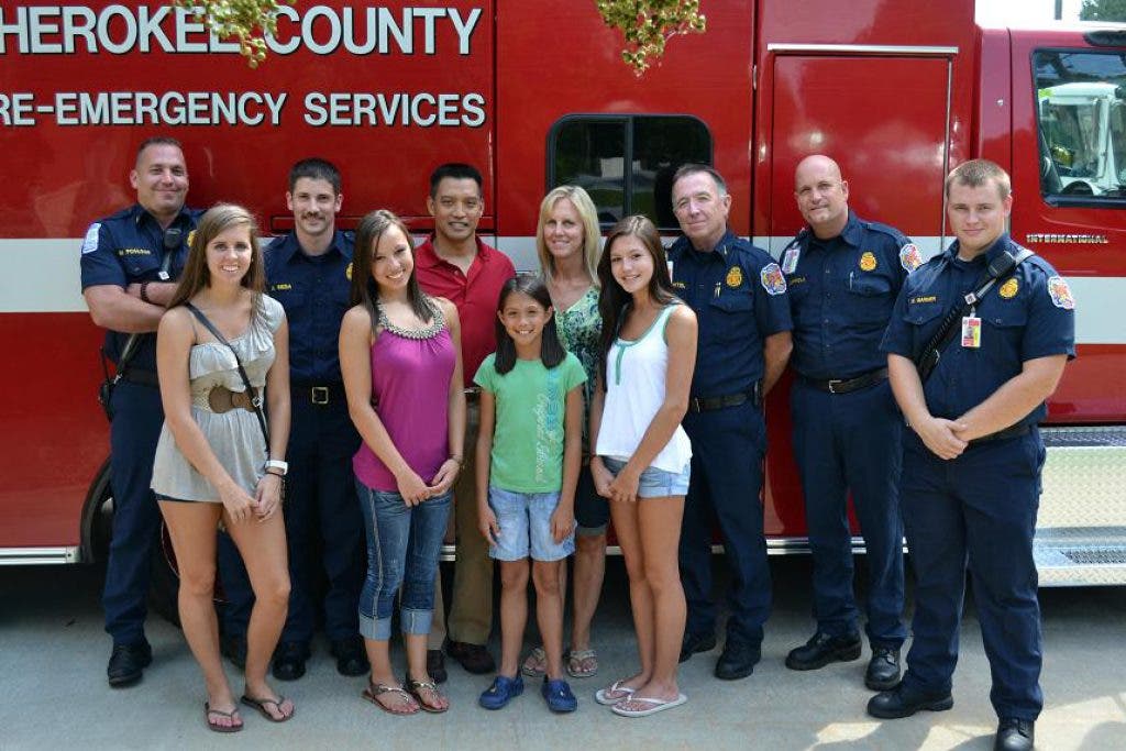 2. A BridgeMill man had no pulse when arrived at his home on June 25. Tony Endozo, 44, returned to the this past week to thank the men who resuscitated him after a 99 percent blockage of the left main coronary artery sent him into ventricular fibrillation. Ventricular fibrillation, an abnormal heart rhythm, can lead to cardiac arrest or sudden death. The Cherokee County firefighters that responded to the scene were: Lt. Rick Baechtel, Sgt. Mike Poulson, and firefighters Scott Coppola, Ethan Garner and Jordan Seda. Open the PDF on this page for Endozo's story.