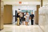 Photo 3: Facility Construction Lead Supervisor Steve Werner explains how the Office of Support Services handled the project in-house and was able to move quickly to complete the needed changes over summer break. In this image, you can see the new interior paint colors, flooring and LED lighting that welcome students, staff and visitors at the main entrance.