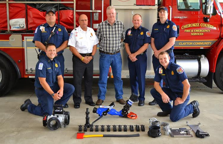 Cherokee County Fire Chief Tim Prather said he was grateful for the donation. Cherokee fire received a BlitzFire HE package, which is a portable monitor with a vertical range of 10 to 86 degrees above horizontal. It flows up to 500gpm of water.