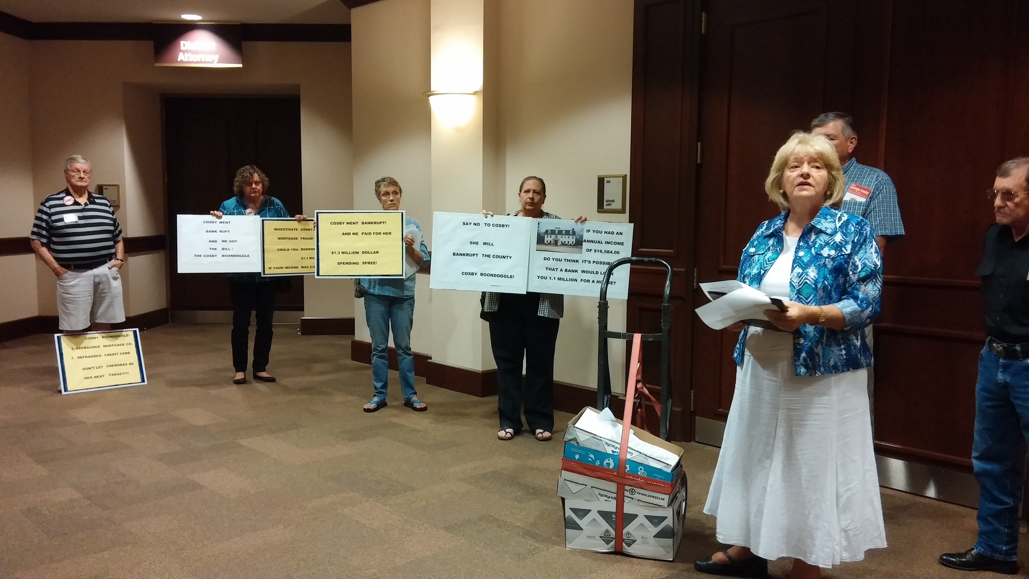 She also had a few detractors who showed up and stood adjacent to her staging area. Those citizens were holding signs that raised questions about Cosby’s ability to handle her own finances.