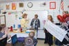 Photo 8: Oak Grove Elementary School Fine Arts Academy teacher Lisa Reidy, center, is surprised by the CCEF ‘Prize Patrol’ including Amanda Arnold, left, and School Board Chair Kyla Cromer, right, as Principal Penny Valle, far right, looks on. Ms. Reidy won a $290.33 CCEF IMPACT Grant for her ‘Homework Help Kindle Project.’