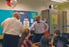Photo 1: Cherokee County Superintendent of Schools Dr. Frank Petruzielo surprises Teasley Middle School teacher Jeremy Law with the news on Thursday, Nov. 5 that he is the Cherokee County School District’s Teacher of the Year.