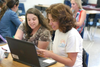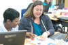 Photo 1: Kim Brown, right, 3rd grade teacher at Indian Knoll ES, and Jodie Hulsey, left, 3rd grade teacher from Ball Ground ES STEM Academy, work together on a problem in a summer math academy class