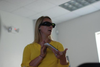 Photo 8: Leah Bleisath, wearing 3D glasses, operates the AV Rover to demonstrate lessons in geometry at CCSD’s first EdCamp “unconference” for technology strategies.