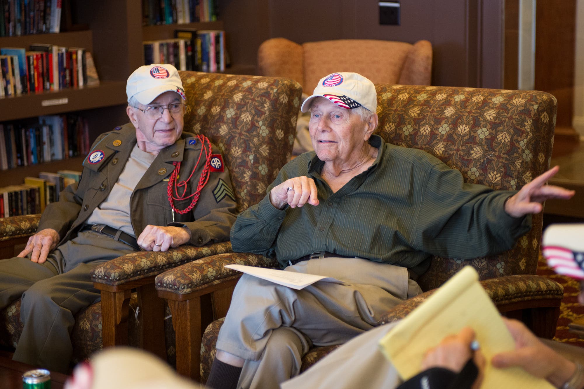The president of the Soleil Veteran’s Club, Buz Buzogany, helped coordinate the intimate chat, and members of the club came to sit and enjoy the stories as they took notes, learning about their fellow servicemen.