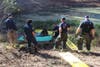 Crews with the rescue unit were dispatched to the call around 10:30 a.m. They arrived on the scene to find the back portion of the horse and its head sticking out of the muddy waters, the fire department said.