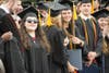 Due to regional heavy rains and unseasonably cool temperatures, officials opted to produce an abridged version of the program, to which graduation candidates cheered.