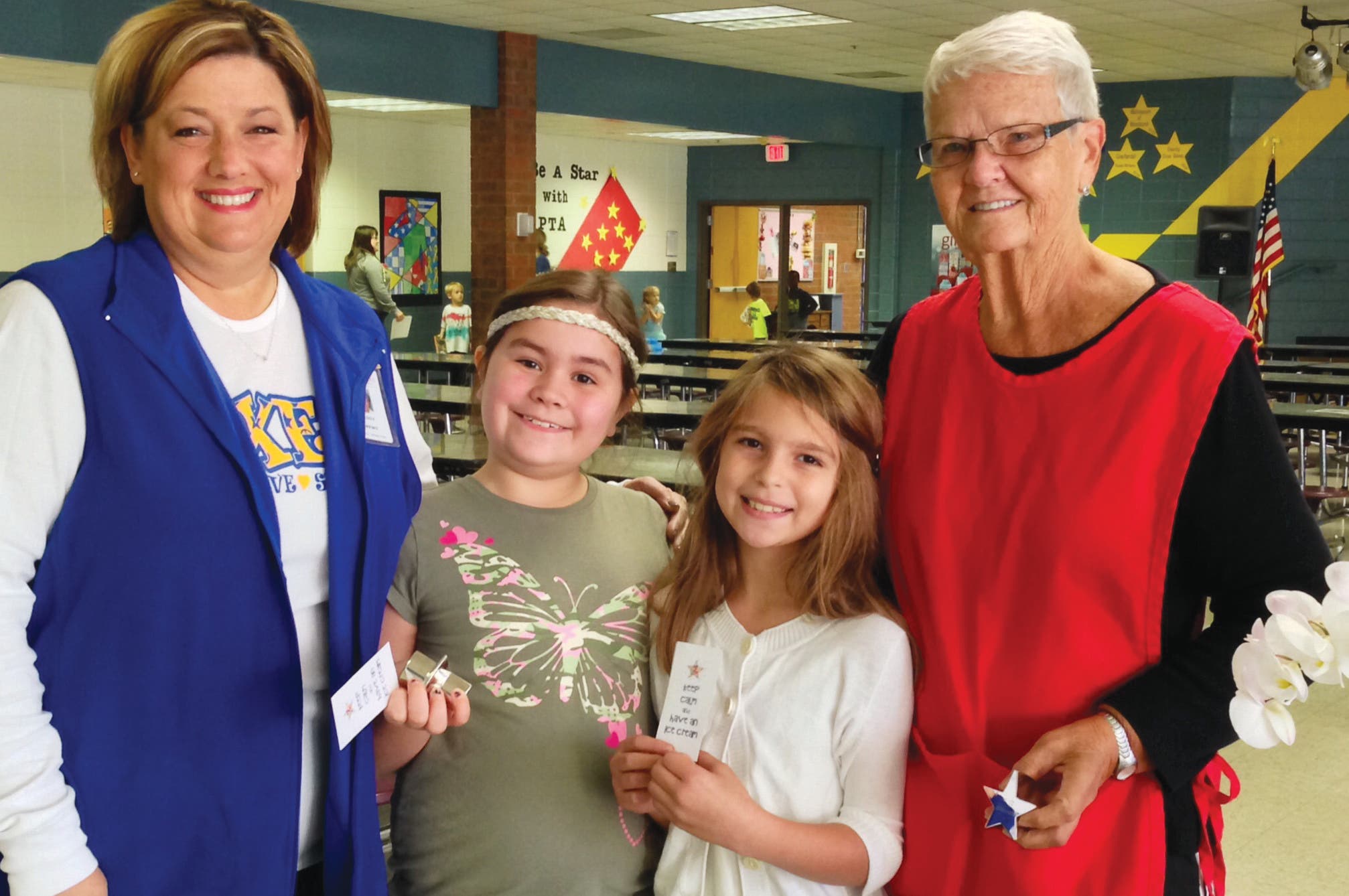Photo: from left to right, Principal Cindy Crews, students Bailey Johnson and Gia DiCarlo and lunch monitor Gloria Szopinski. Credit: Cherokee County School District