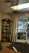 A senior living facility suffered damage to its entrance when an SUV crashed into the building late Friday morning in Canton.