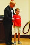 Photo 3: Caden Cherry's twin brother, Cooper, provided school staff with vital information during the response, is thanked by the School Board and Superintendent.