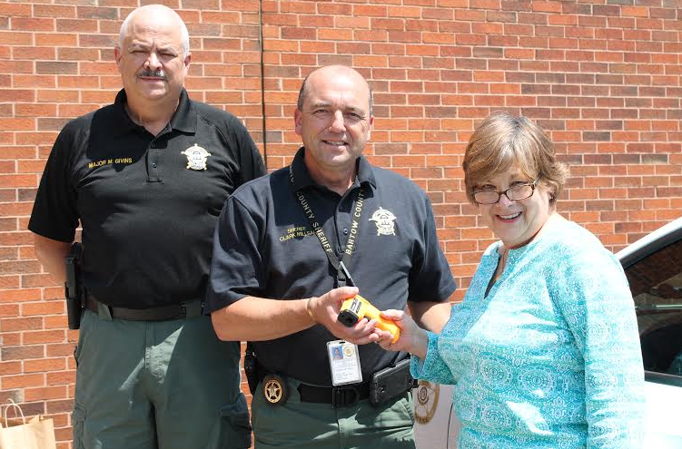 Photo: Susan Wade, board member of the League for Animal Welfare, hands Sheriff Millsap one of the heat sensors that was donated. Also pictured is Patrol Division Commander Major Mark Givens. Credit: Bartow County Sheriff’s Office.