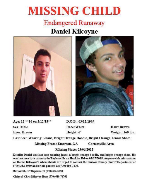 A Facebook page created to help find Daniel Kilcoyne reports the teenager has been found.