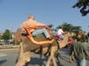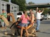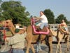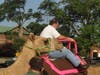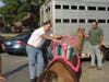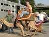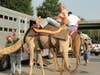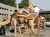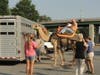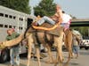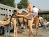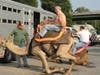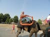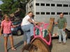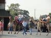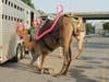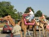 Meeting their Relay for Life fundraiser goal, Bartow County Commissioner and Cartersville Mayor Matt Santini road camels through downtown.