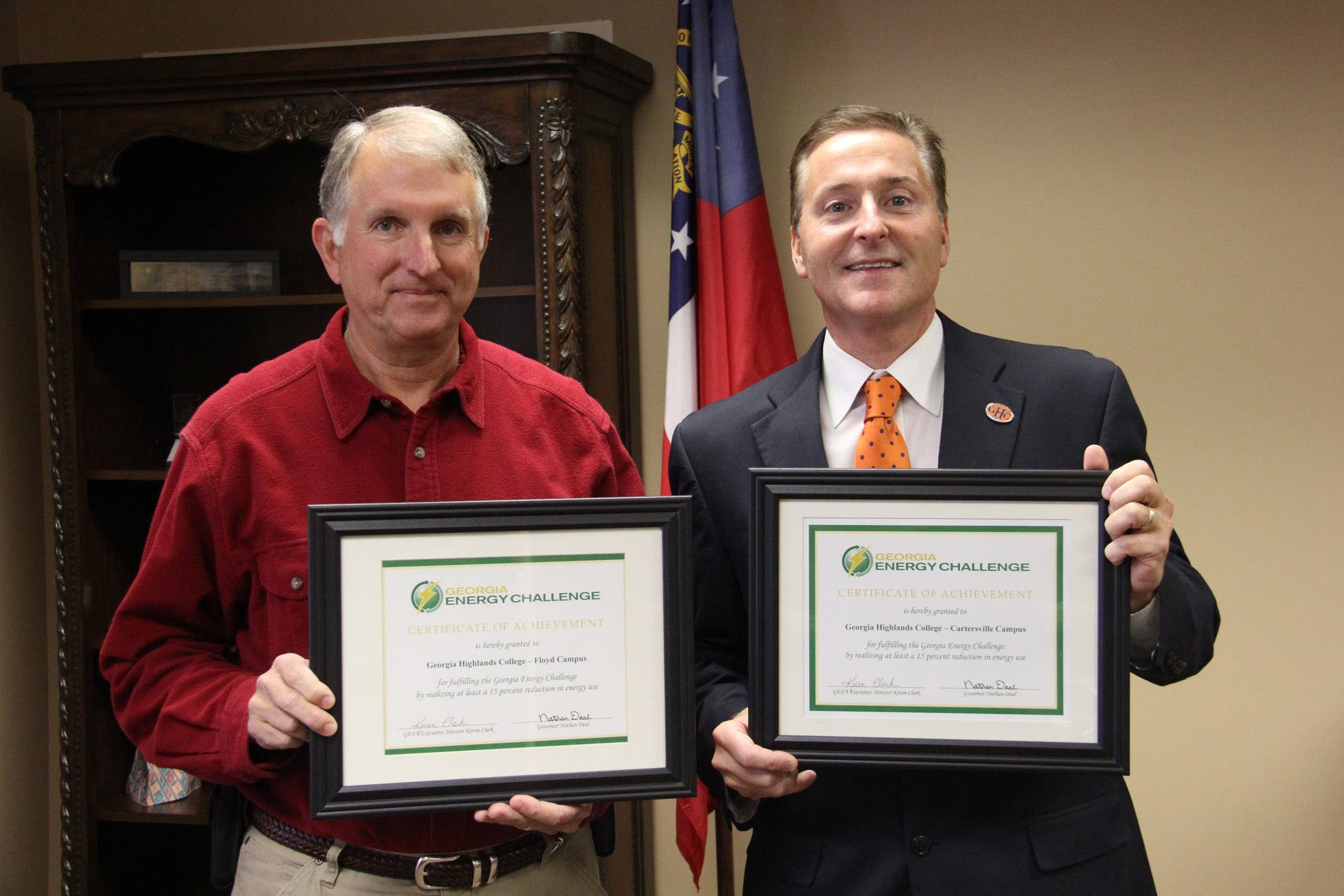 Photo: from left to right, Philip Kimsey, director of plant operations and Dr. Donald Green, president of Georgia Highlands College. Credit: Georgia Highlands College.