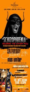 The Event: Halloween weekend itβs time to show your alter ego.Β The Museum Bar presents for your All Hallows Eve enjoyment, the biggest and best Halloween Bash in the ATL, Β " S C H I Z O P H R E N I A! "...Release the other you... Over 2,000 attendees are expected to cover over two floors of Halloween partying. The top level will have the mixing styles of DJ Tayrok & DJ Salah, as you jam into βLimbo.β Lower Level will excite you with βPurgatoryβ as you are one step into darkness, so jam like there is no turning back as DJ Kemit jams the night away.