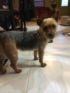 Hi I'm Sophie Kay! I'm a two year old yorky/jack russel mix.... And no I'm not a hyper girl, I LOVE CUDDLING! Ya see, I have a boo boo on the back of my neck because my previous so called owners left a darn collar on me and never adjusted it so it grew into my neck. I'm a sassy girl and I don't like the scar but my fostor mom says I'm a pretty girl! I'm a little intimidated by big dogs but I'm doing better. Small dogs would work best with me. Did I mention that I like kids? My human fostor brother comes in from school and he's the BEST! I can't help but to attack him with kisses! I love my fostor mom, I let her share the pillow with me at night. I'm a sweet girl so I share! If your interested in adopting me I will surely share my pillow with you but first you have to go to forsythpets.org and fill out an application for me!