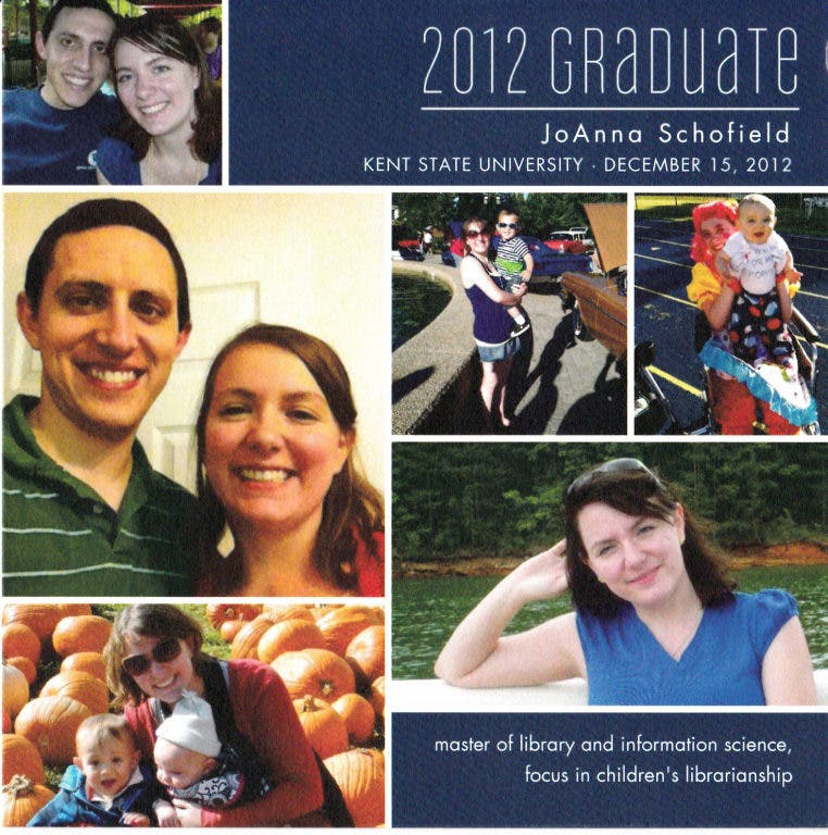 Joanna Phillips Schofield graduates on Dec. 15, 2012 from Kent State University with a Master of Library and Information Science. Joanna is a graduate of North Forsyth High and received a degree in History from North Georgia College.