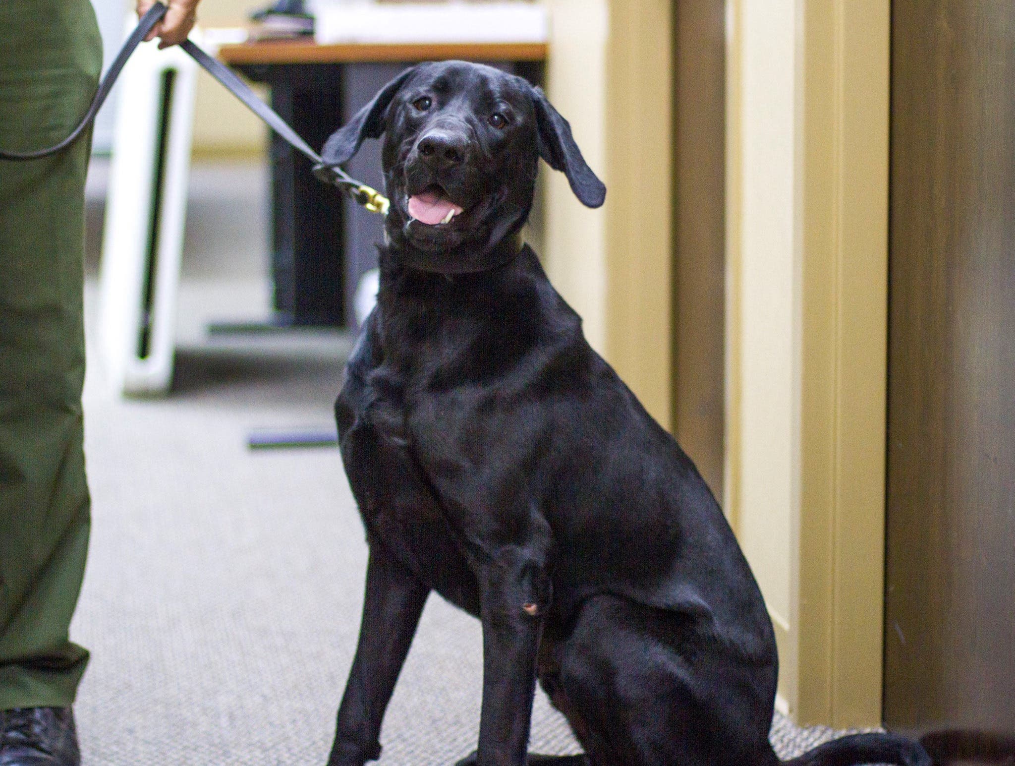 Edd, an 18-month-old Labrador Retriever, has been trained to detect explosives, firearms, and ammunition by sense of smell, the Sheriff’s Office said. Edd can assist his human colleagues by examining suspicious packages without the need for another officer to risk his or her life to open it.