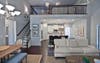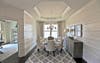 “I REALLY love the look of that bleached wood contrasted against the navy accent wall,” said Cain. “Opposite that the open kitchen and dining rooms are bright and airy, just waiting for the future homeowners to enjoy a quiet evening at home entertaining family and friends. The master suite is truly a luxury suite – so relaxing and peaceful with cool and crisp blue and white color scheme throughout the bedroom, bath and large sitting area. I specified all interior doors to be painted a dark gray while the trim remained white for a very dramatic look. The upstairs loft area is a great get-away media area with an extra bedroom and full bath. It’s the ideal space for a sprawling guest quarters or a hang-out for a college-age child who might be home for the holidays. The color scheme of the adjoining guest bedroom and bath are black, white and gray with a ‘pop’ of lime green... so fresh and fun.“