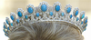 Happy Tiara Tuesday! This week we feature a dainty and beautiful turquoise tiara, celebrating December’s birthstone. This button-style tiara features a larger set of turquoise stones, each completely surrounded by diamonds, with a smaller set of turquoises in between them, all atop a diamond scroll frame. The tiara is part of a set that includes a necklace, earrings, and a brooch.