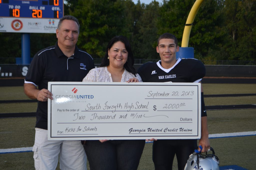 Alex Barbir (R), during the 2013 Georgia United Credit Union “Kicks for Schools” promotion.