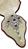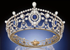 Happy Tiara Tuesday! This week's tiara is a stunner that did not come from royals! Rather, this tiara was made by E. Wolff & Co. for Garrard in 1889 and is known as the Portland Antique Sapphire, Diamond, and Natural Pearl Tiara. Quite the mouthful!This stunning tiara was made shortly after the marriage of the 6th Duke of Portland to his wife, Duchess Winnifred Dallas-Yorke, in 1889. The tiara consists of sapphires from Ceylon and Burma, old-cut diamonds, and natural saltwater pearls, all set in silver and gold. They broke down several other pieces of jewelry in the family's collection to get the jewels for this tiara, and it was well worth it! The tiara has a matching stomacher brooch, which predates the tiara and may have inspired the tiara's design.The only known image of a family member wearing the tiara is this painted miniature on ivory of Ivy, Duchess of Portland (1887-1982), when she was Marchioness of Titchfield (she was the 7th Duke's wife). The painting shows her wearing the tiara and the matching stomacher brooch.