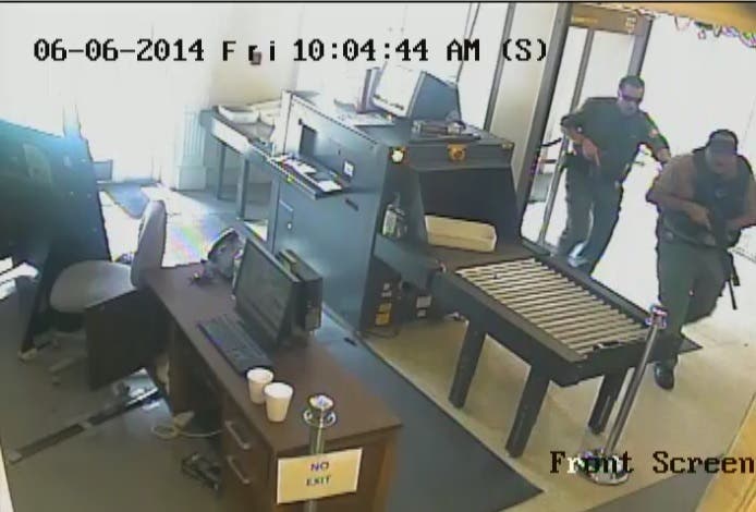 Rush was working the doorway of the courthouse when Dennis Marx drove his SUV up to the courthouse. Heavily armed, Marx tossed out homemade smoke grenades, pepper spray grenades and spike sticks as he approached the courthouse.