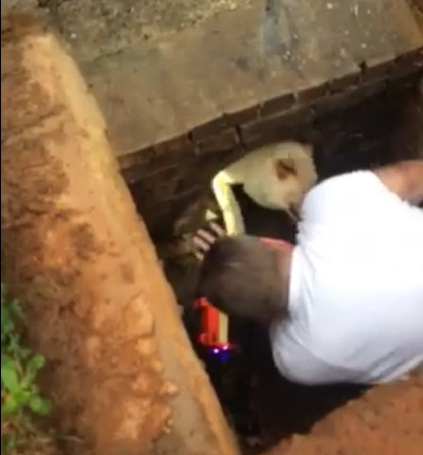 Watch: Forsyth Firefighters Rescue Dog From Storm Drain