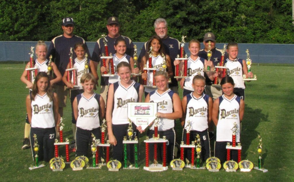 Congratulations to the Dacula Major All-Stars who have gone undefeated in three tournaments and have a record of 12-0. This softball team for girls 11-13 year of age has won the South Summer Championship at South Gwinnett Park, the Pre-County Tournament at Legions Field in Buford and the TriCounty Touranment at George Pierce Tournament in Suwanee.