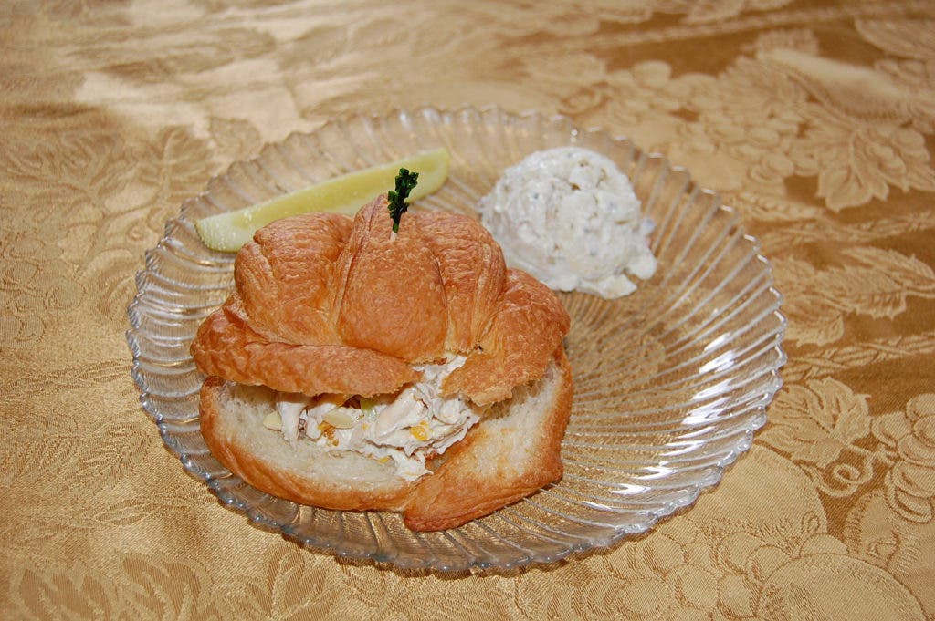 Cafe 313:Β Blessings Chicken Salad is served on a freshly baked croissant and is accompanied by a baked potato salad. A blend of savory and sweet ingredientsΒ makes thisΒ chicken saladΒ dish unique and delicious.Β TheΒ chunky and richΒ baked potato salad accompanies theΒ Blessings Chicken Salad perfectly toΒ completeΒ our most loved dish atΒ Cafe 313.Β