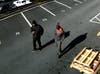 Around 11 a.m., he returned with another man, a black male wearing a gray sweatshirt with orange lining, gray sweatpants and a read-and-gray striped knit cap.