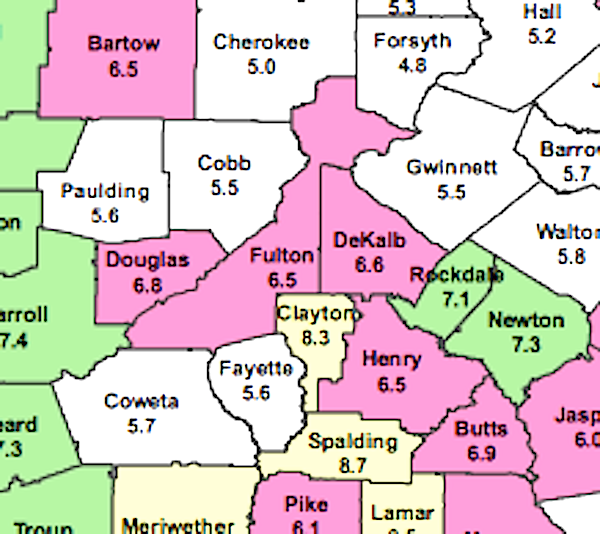The rates in January 2014 were 6.4 percent in Paulding, and 7.1 in the metro.