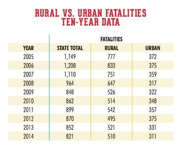 Rural drivers are also on the road more than city dwellers, driving farther for work or social events. As is true across the nation, lower gas prices leads to more leisure driving, especially in rural areas surrounded by beautiful scenery. The more miles traveled a year, the more likely accidents are.