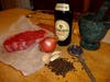 Marinate the beef: First decision is that stout is going to be better than ale. Years ago I frequented the now-gone One Way Fare restaurant in Simsbury, CT, which had a Steak & Stout on their menu. It was tender and flavorful and trying to replicate the marinade seems like a good idea to me. Most recipes called for braising beef, which I take to mean a chuck steak, but I want to make only enough for two on a weeknight (thus not having time for a 2 hour braise), so I opt for a strip steak.