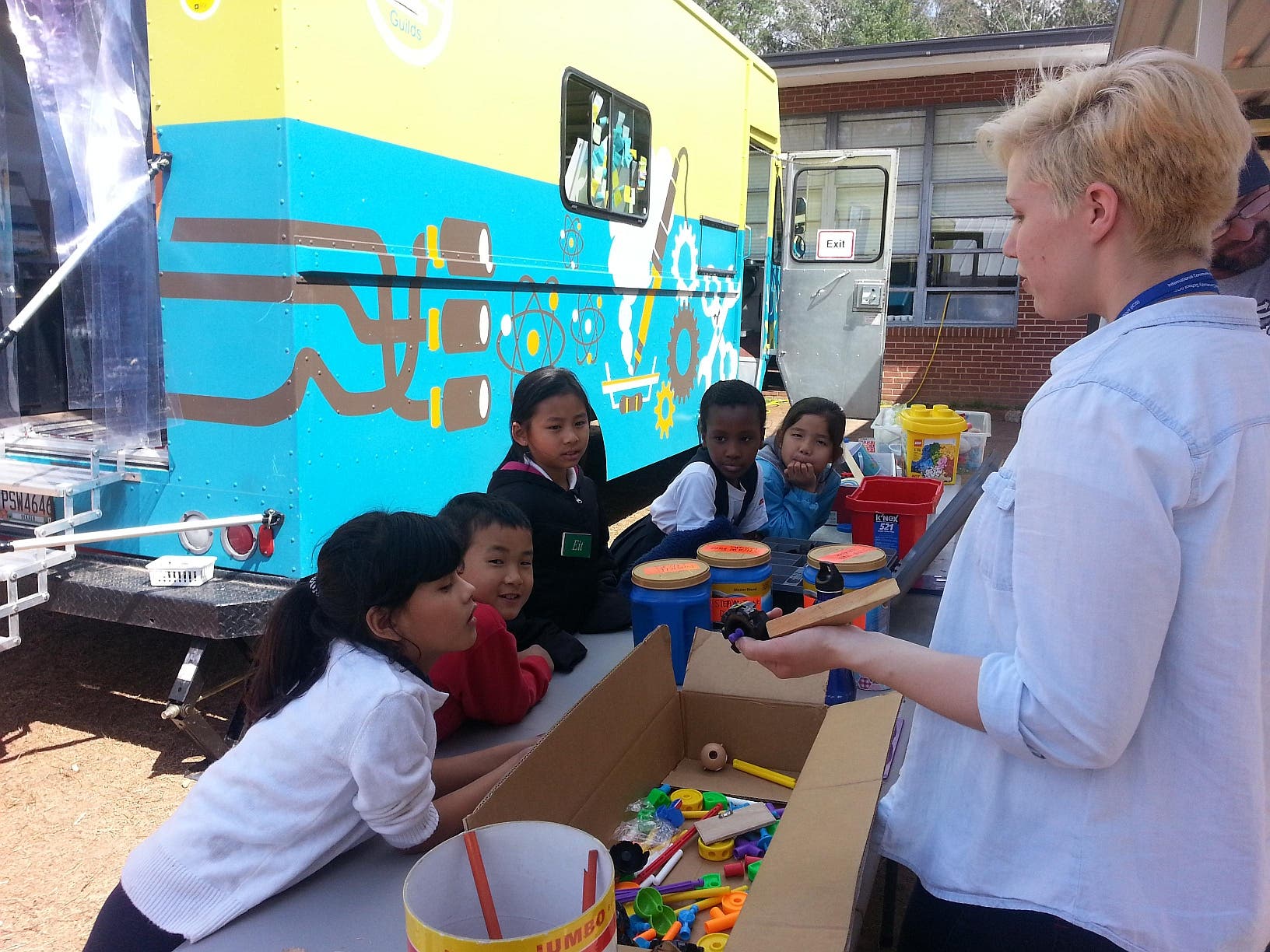 A lot of learning is taking place at the International Community School (ICS) in Decatur in a large truck outside the school building. Called STE(A)M Truck, this innovative mobile lab inspires children to learn science, technology, engineering, arts and math by bringing the tools, equipment and mentors directly to their school.