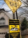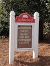 The Ashwood Homeowners Association has posted signs at the exit of the development saying, "Neighborhood Alert! Watch for any suspicious activity."