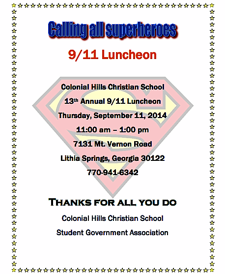 On Thursday, September 11, the Student Government Association at Colonial Hills Christian School in Lithia Springs will be presenting its 13th annual 9/11 Luncheon for community first responders.
