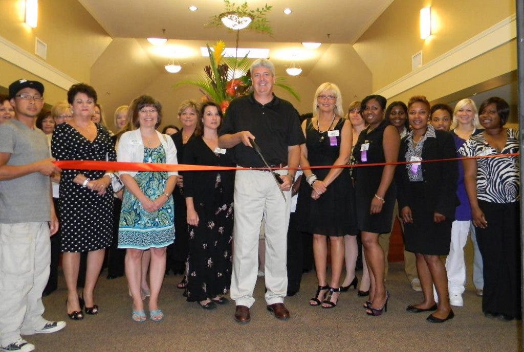 Participating in the ribbon cutting on Thursday, May 3 were: Sara Ray, Director of Community Affairs, Douglasville Chamber of Commerce; Chuck Brown, Vice President; and Keith Wilson, Executive Director, Douglasville Nursing and Rehabilitation Center.