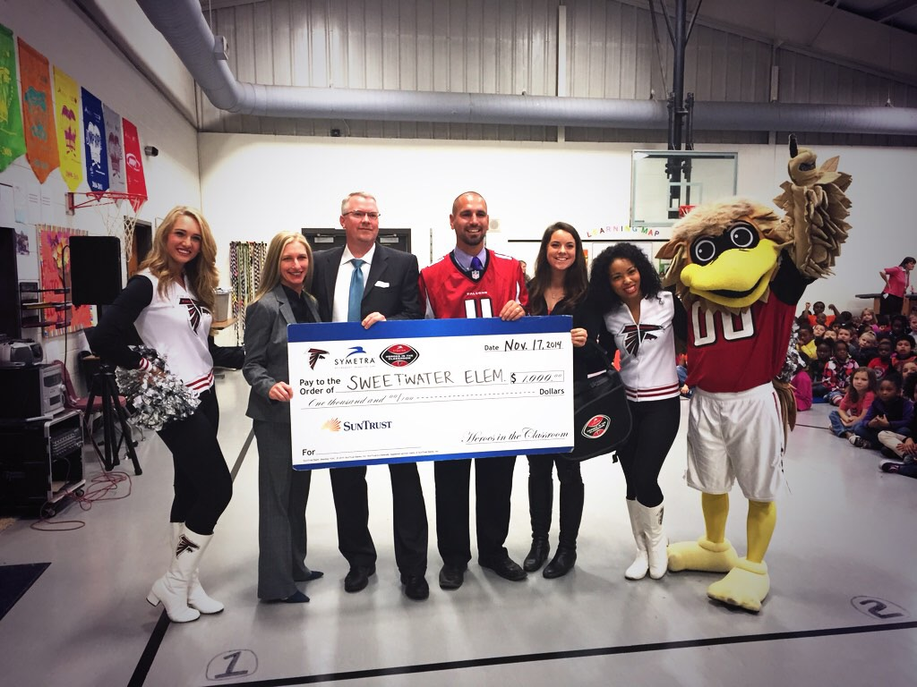 Symetra, SunTrust and the Atlanta Falcons honored Sweetwater Elementary School teacher Joseph Grainger as a “Symetra Hero in the Classroom” on Nov. 17, 2014 during a surprise assembly. Grainger teaches first grade at the Lithia Springs, Georgia, elementary school.