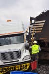 The tractor-trailer had attempted to illegally cross the intersection and became hung up on the track, Loudermilk said. The train was traveling westbound and was unable to stop.